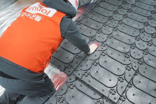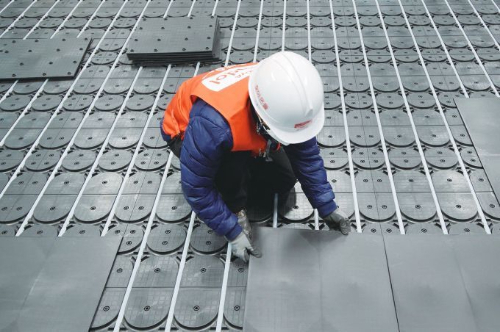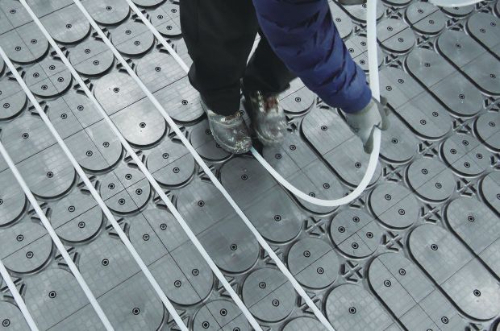 Verlegen der Heizungsrohre in den Paneelrillen